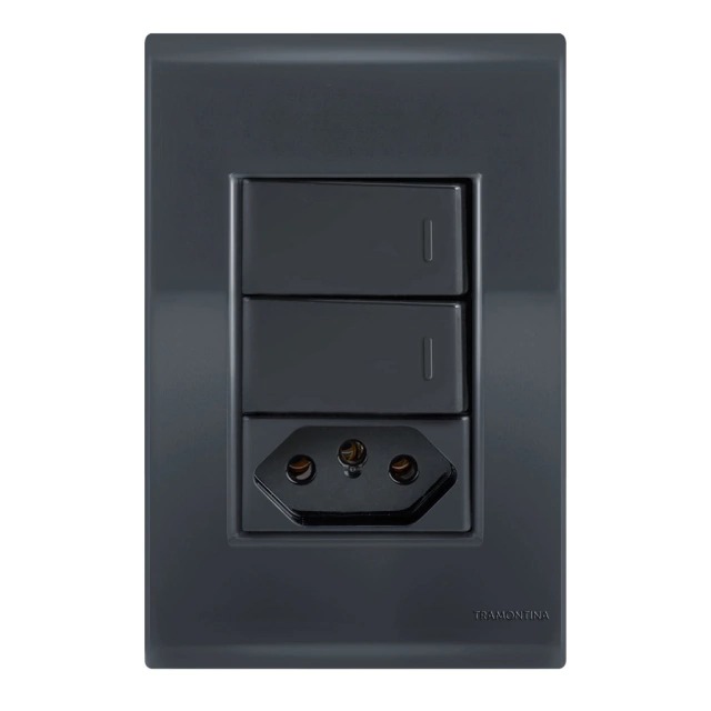 Conjunto Interruptor Duplo Paralelo + Tomada 20A Liz Grafite Tramontina
