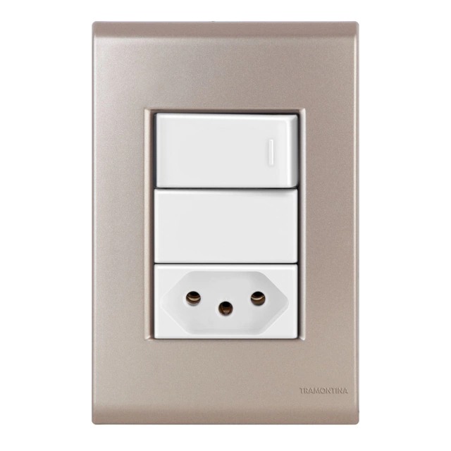 Conjunto Interruptor Paralelo + Tomada 20A Liz Ouro Velho c/ Branco Tramontina