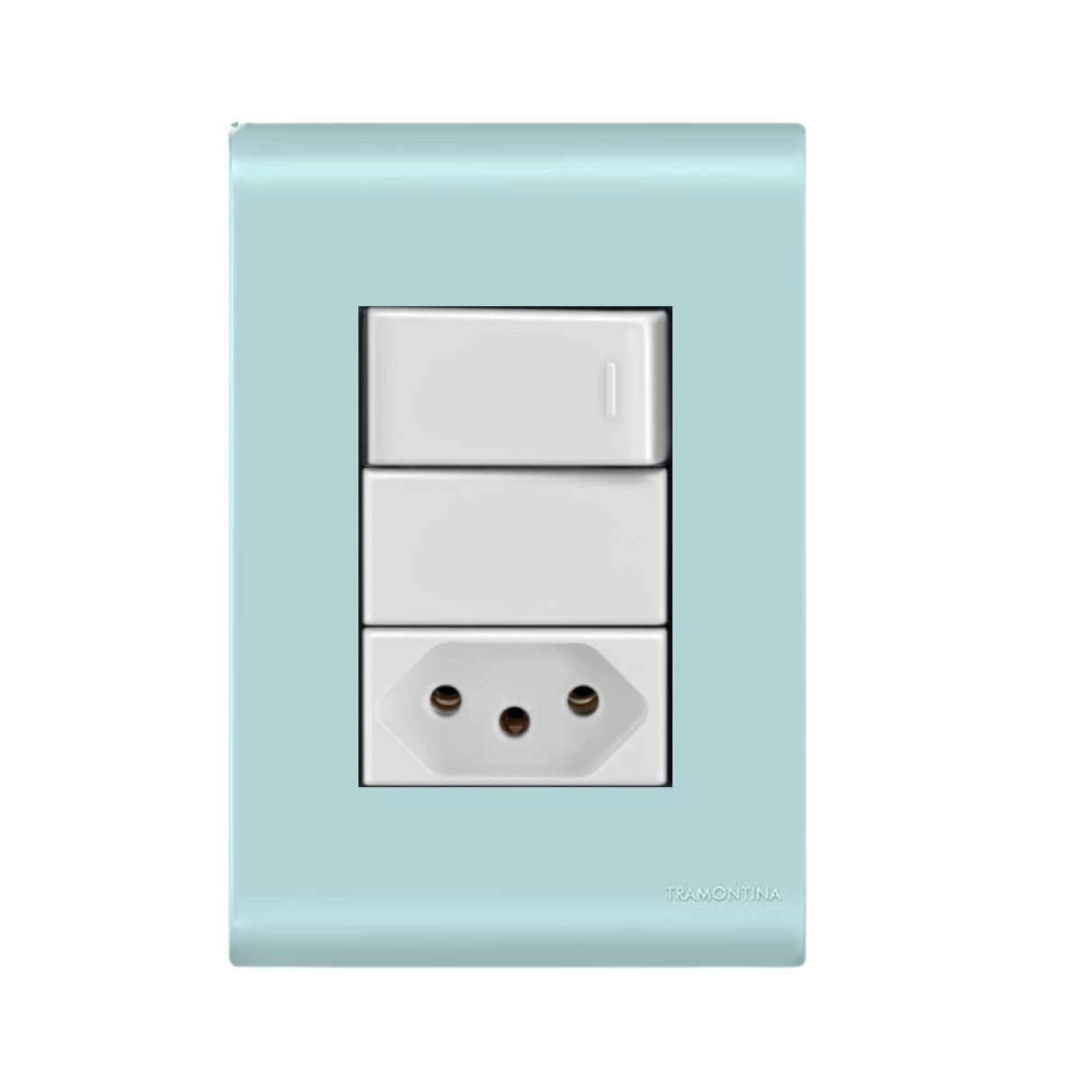 Conjunto Interruptor Simples + Tomada 20A Azul Jeans Tramontina
