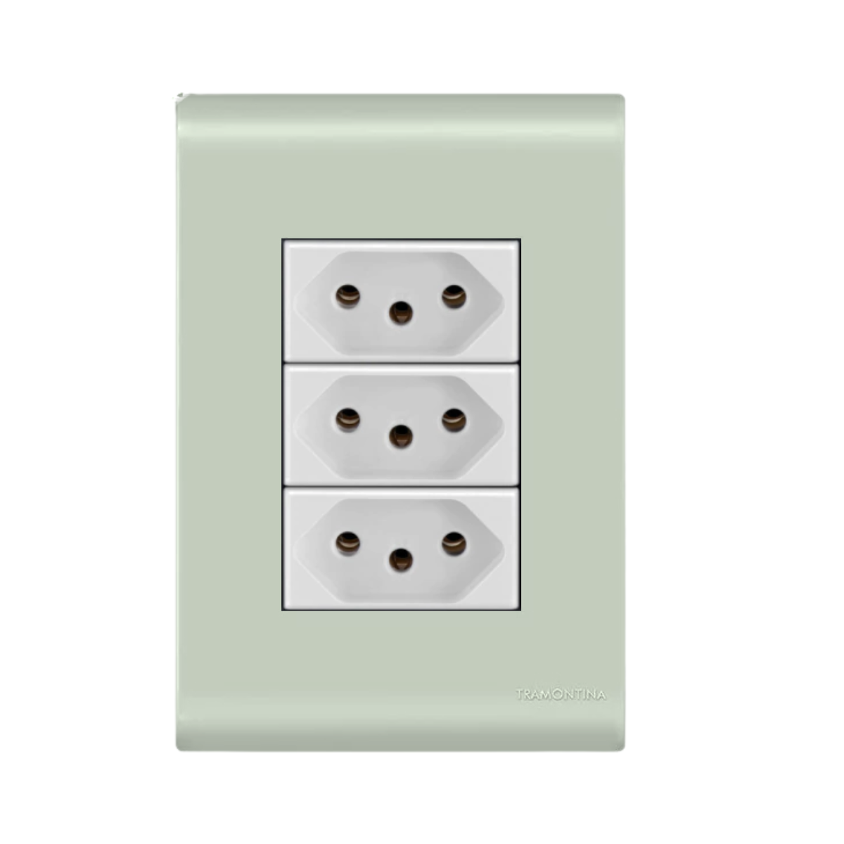Conjunto Tomada Tripla 20A Liz Verde Ardósia Tramontina