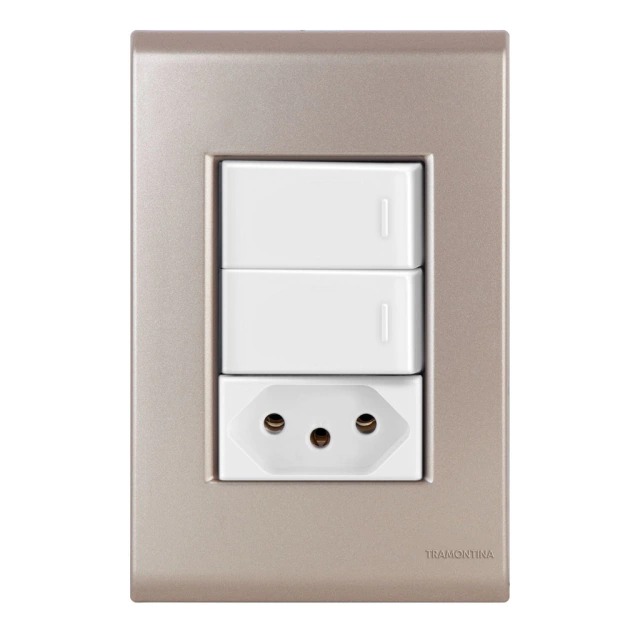 Conjunto Interruptor Duplo Simples + Tomada 20A Liz Ouro Velho c/ Branco Tramontina