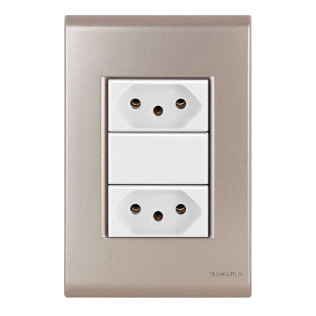 Conjunto Tomada Dupla 20A Liz Ouro Velho c/ Branco Tramontina