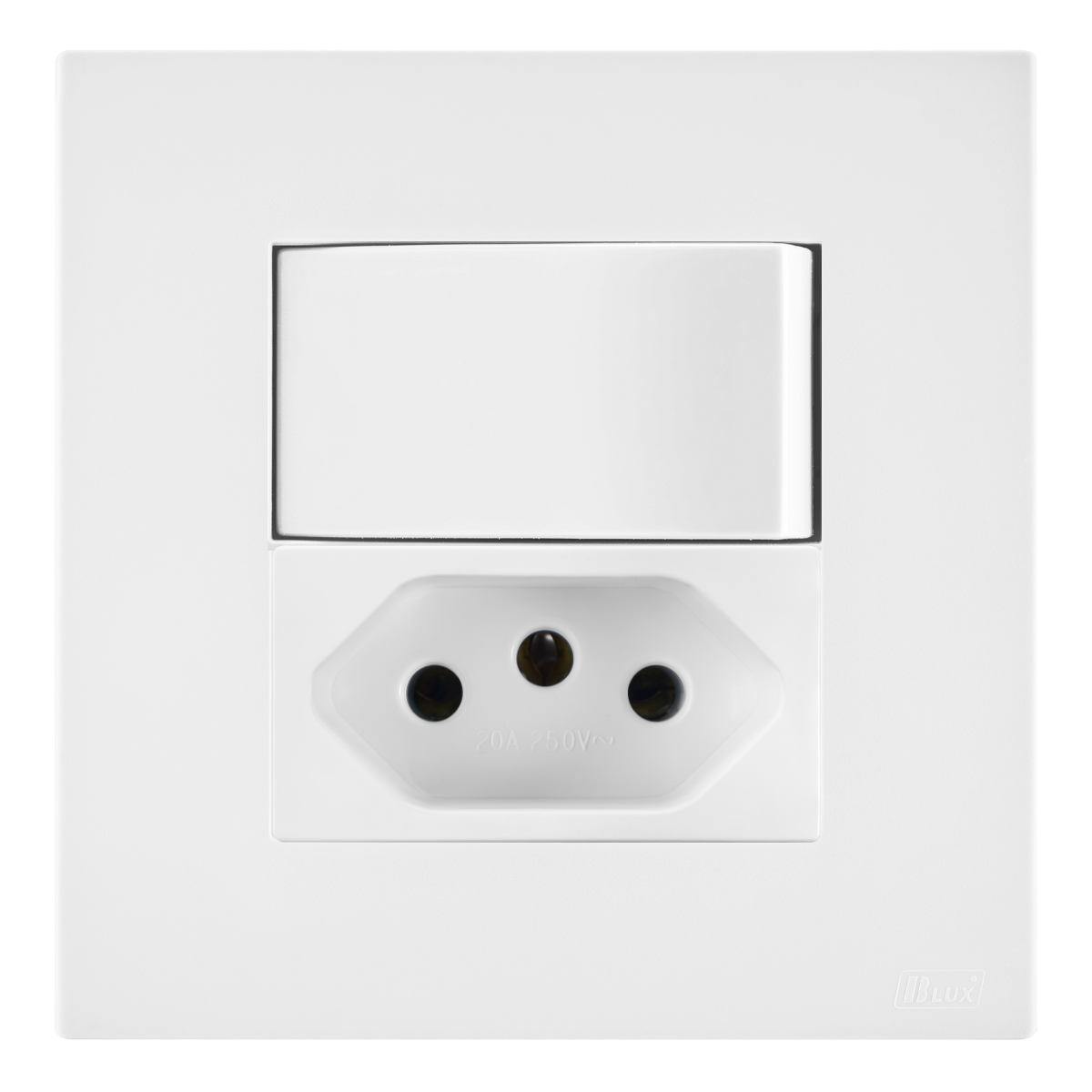 Conj. Interruptor Paralelo + Tomada 10A Mobili Recta Branco Fosco Blux