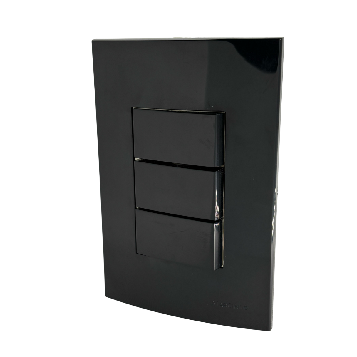 Conjunto Interruptor Triplo Simples Sleek Ebony Preto Margirius