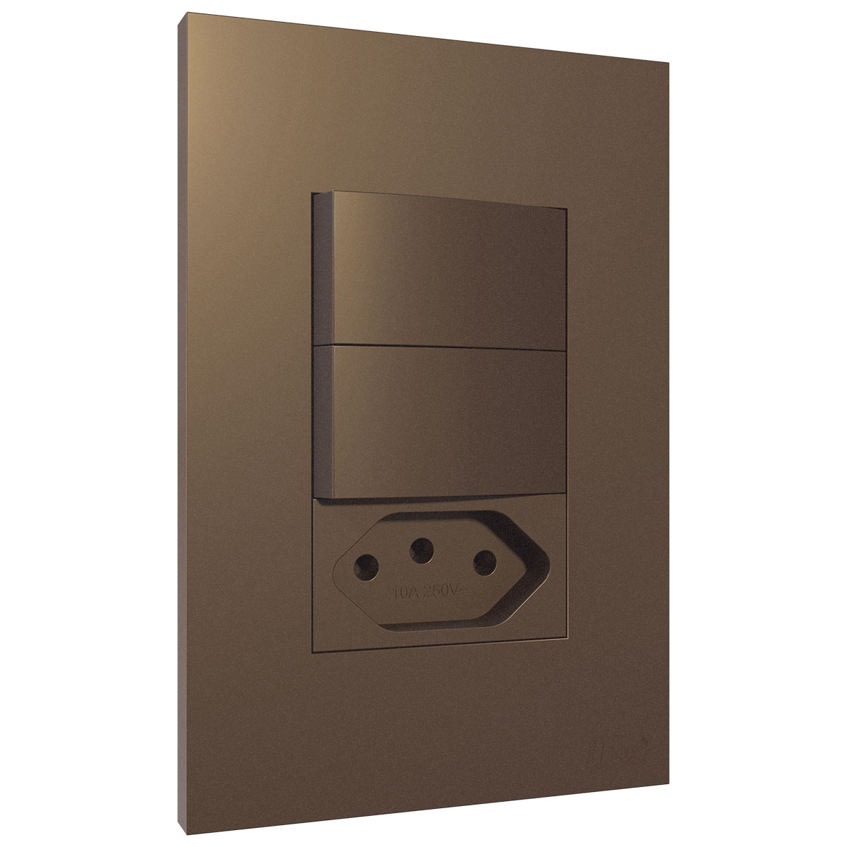 Conjunto Interruptor Duplo Simples + Tomada 10A Recta Corten Fosco Blux