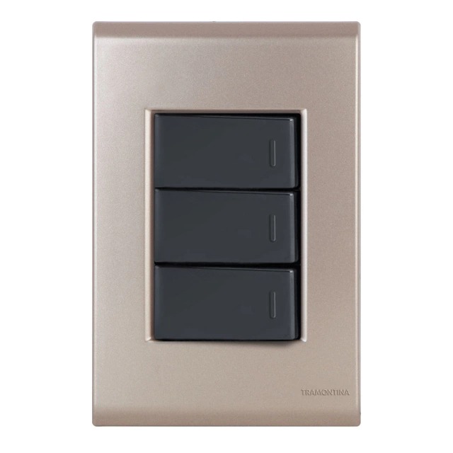 Conjunto Interruptor Triplo Paralelo Liz Ouro Velho c/ Grafite Tramontina