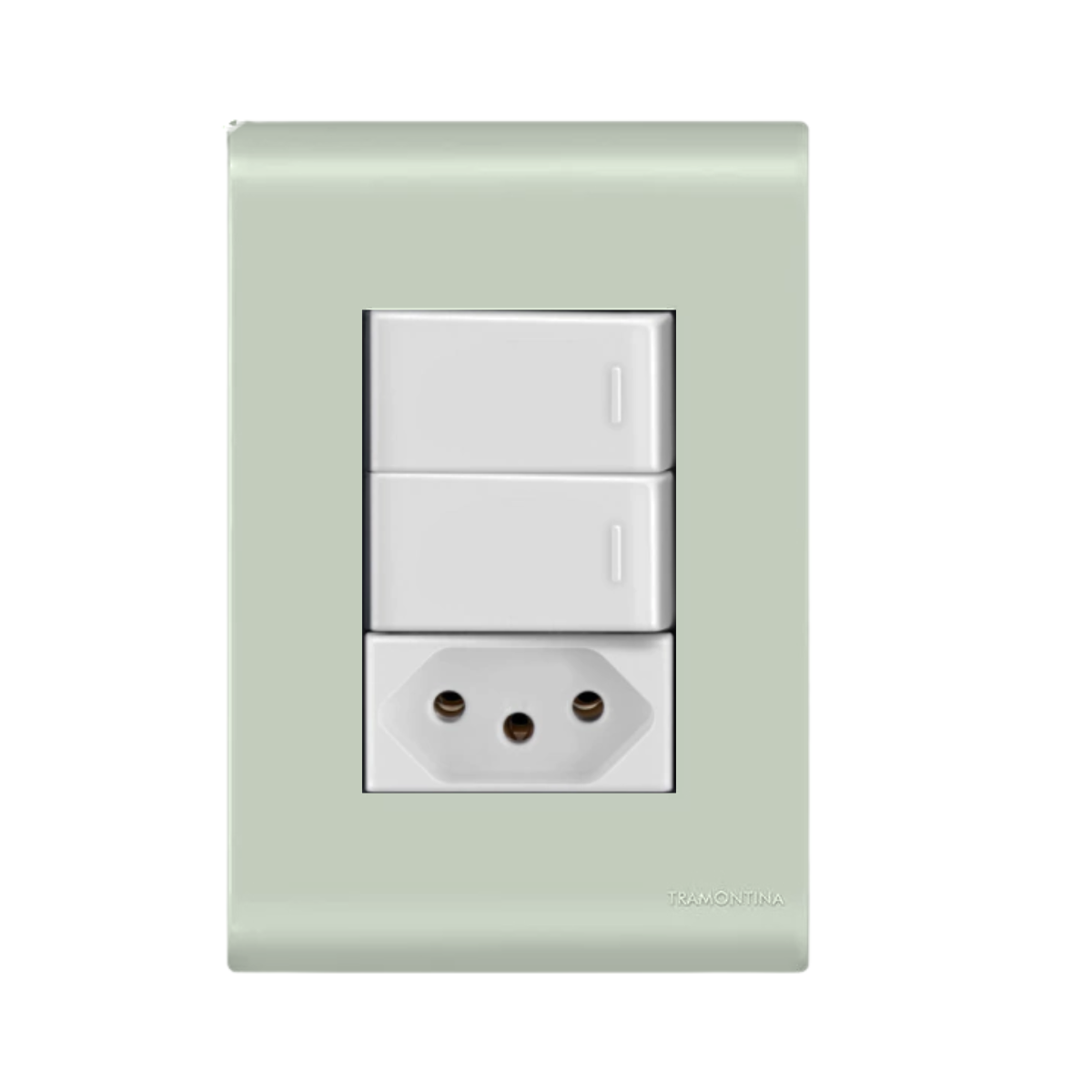 Conjunto Interruptor Duplo Paralelo + Tomada 20A Liz Verde Ardósia Tramontina