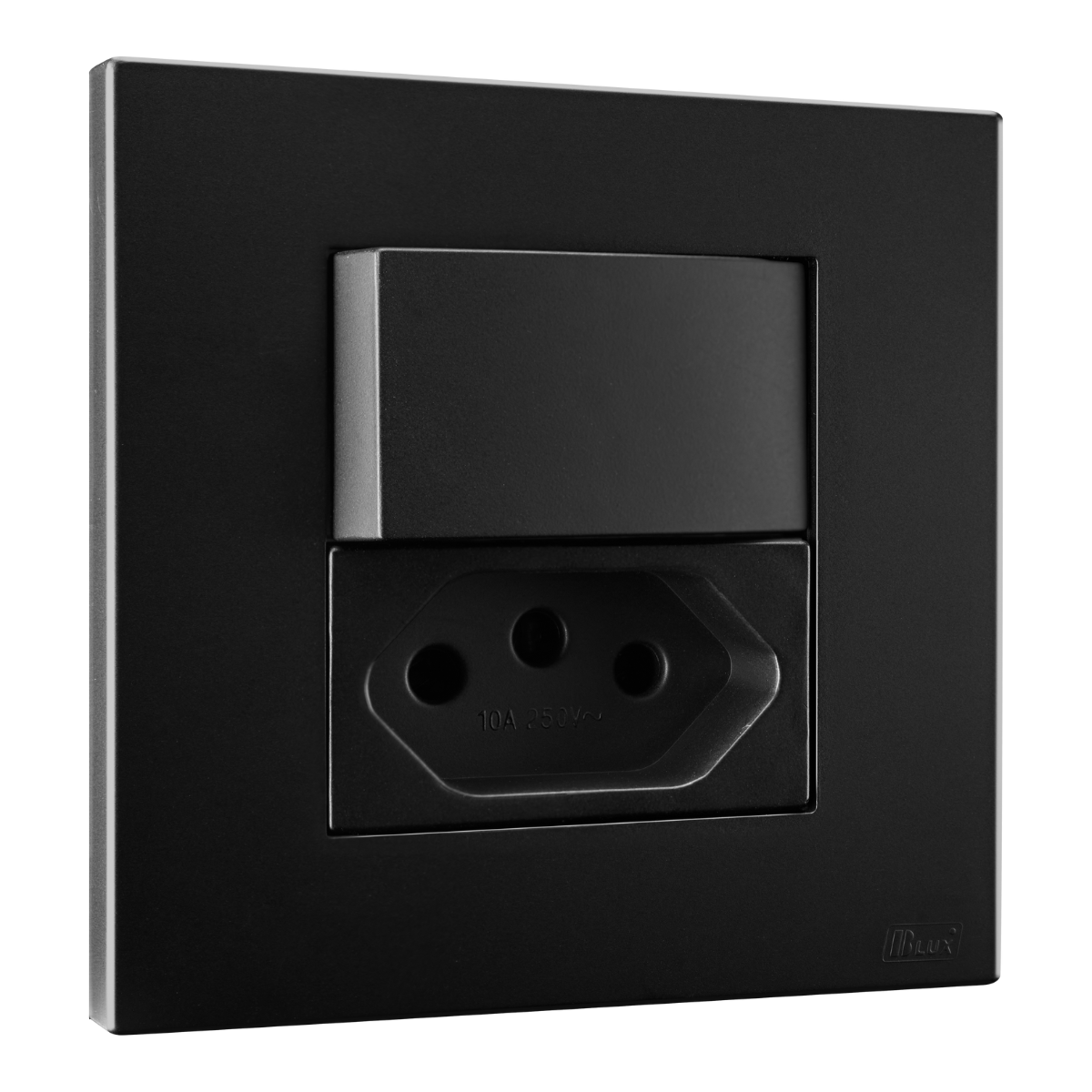 Conj. Interruptor Simples + Tomada 10A Mobili Recta Preto Fosco Blux