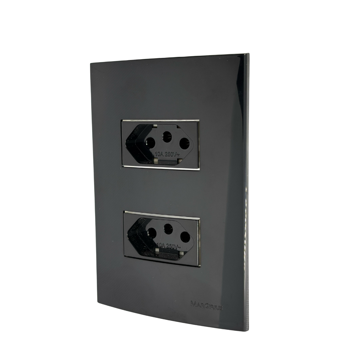 Conjunto Tomada 10A + 20A Sleek Ebony Preto Margirius