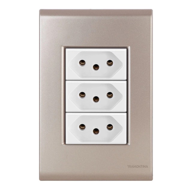 Conjunto Tomada Tripla 20A Liz Ouro Velho c/ Branco Tramontina