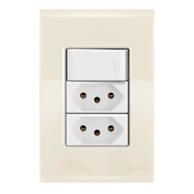 Conjunto Tomada Dupla 20A + Interruptor Simples Liz Bege Tramontina