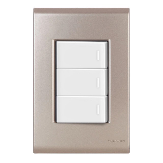 Conjunto Interruptor Triplo Simples Liz Ouro Velho c/ Branco Tramontina