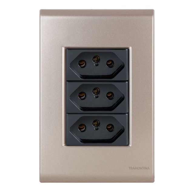 Conjunto Interruptor Duplo Simples + Tomada 20A Liz Ouro Velho c/ Grafite Tramontina