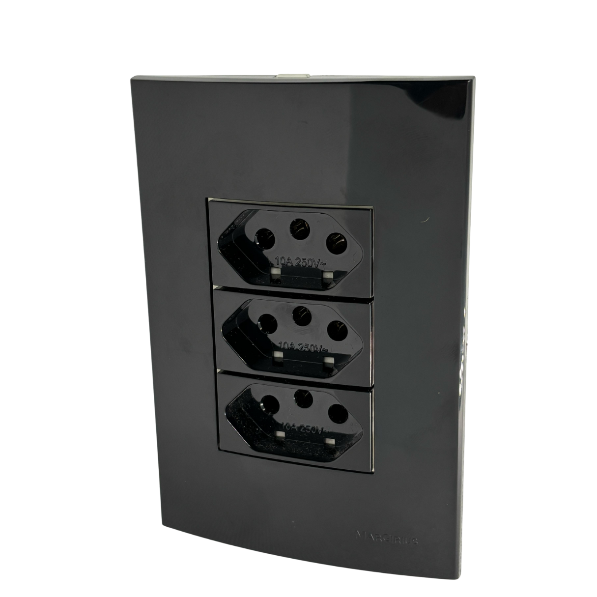 Conjunto Tomada Tripla 20A Sleek Ebony Preto Margirius