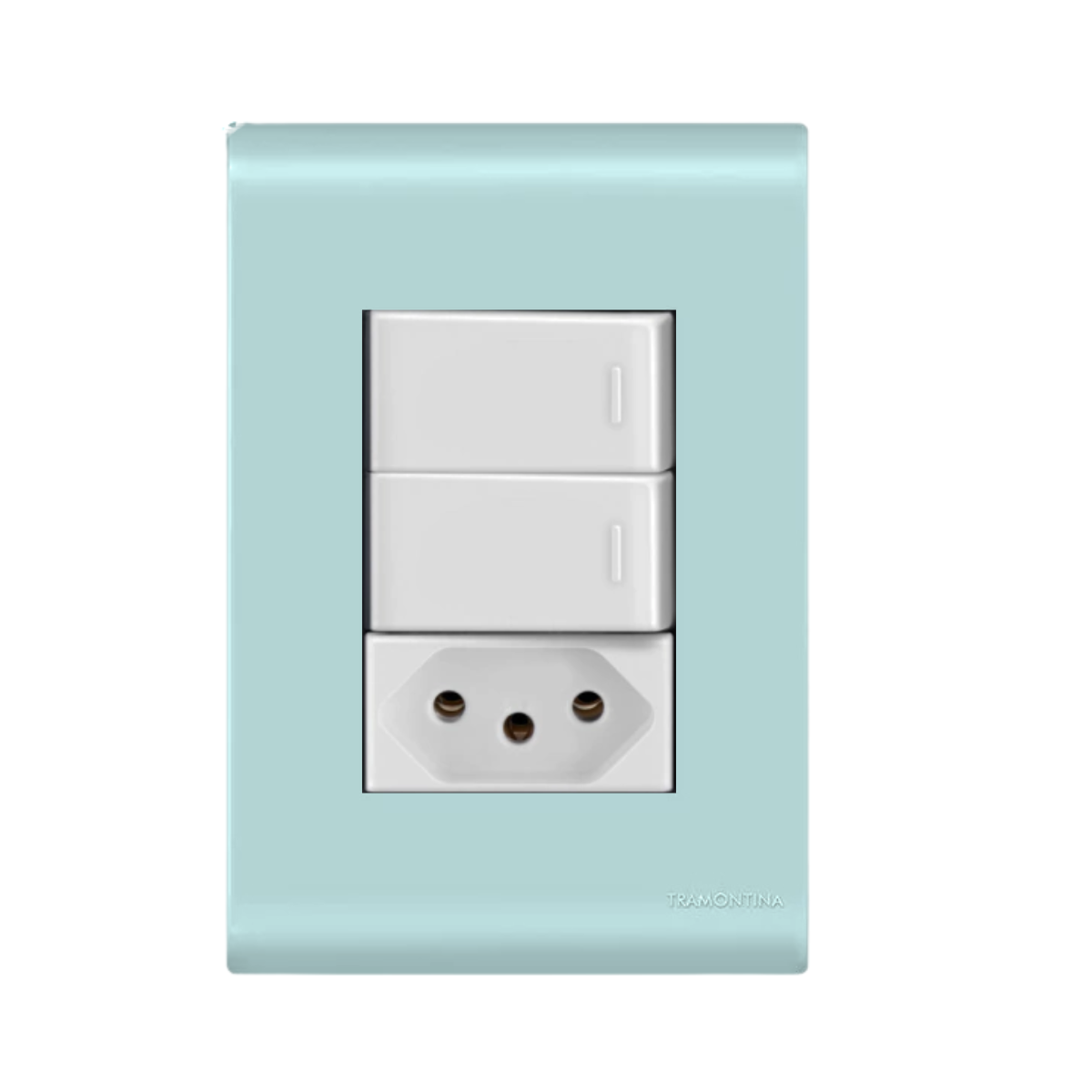 Conjunto Interruptor Duplo Paralelo + Tomada 20A Liz Azul Jeans Tramontina