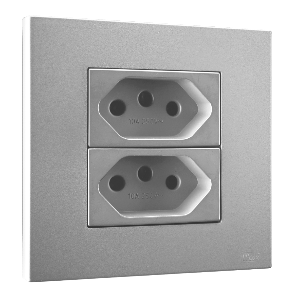 Conj. Tomada Dupla 10A Mobili Recta Prata Fosco Blux